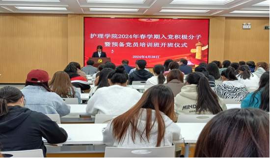 培训班班主任徐志宏对本次培训工作做了安排部署并提出了培训要求,要求学员严格遵守培训班管理要求,认真听讲、积极参加理论讲座、研讨交流、红色教育等环节的培训。助产学221班谢昕同学代表参训学员做了表态发言。