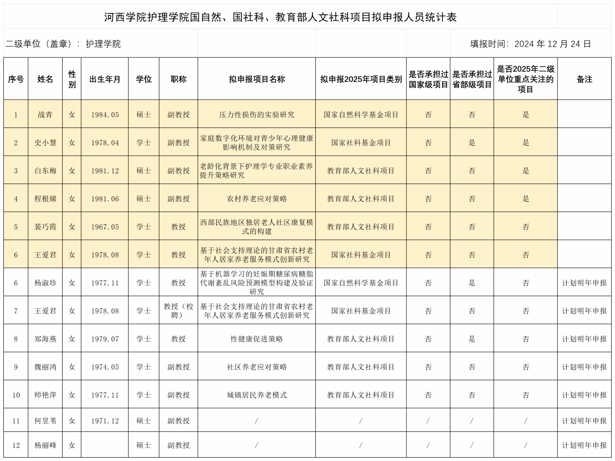 sunbet国自然、国社科、教育部人文社科项目拟申报人员统计表
