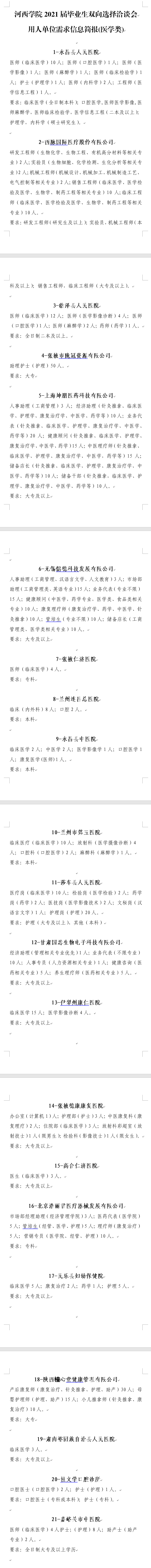 sunbet官方网站12月28日医学类双选会参会单位需求信息汇总(更新中)