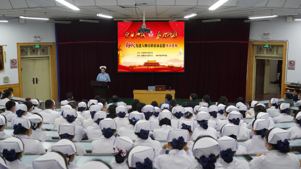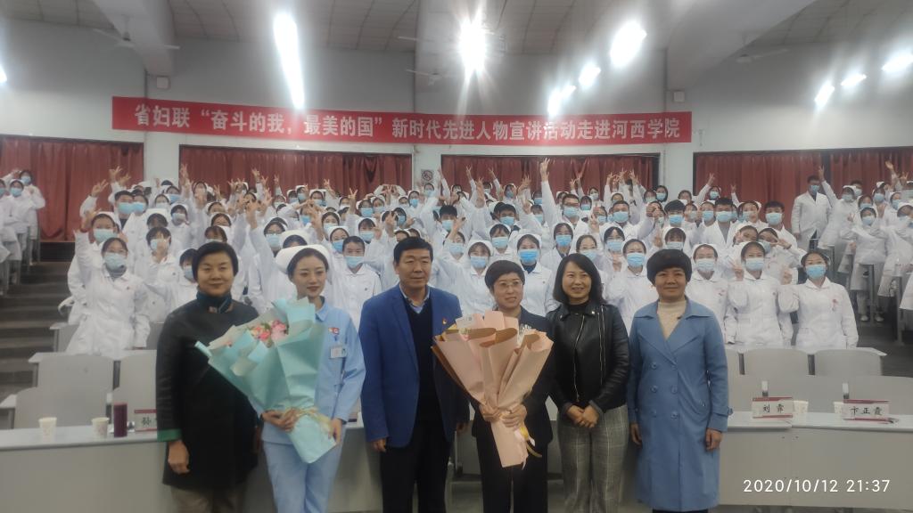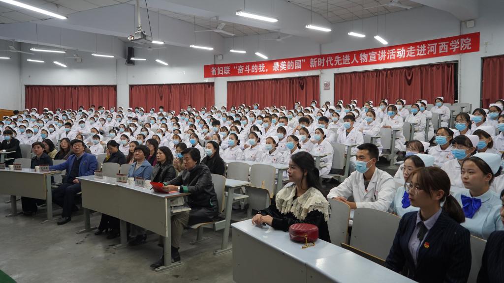 10月12日,sunbet邀请甘肃省妇女联合会,举办了“奋斗的我,最美的国”新时代先进人物进校园宣讲活动,拉开了sunbet首届“青春导航、职场筑梦”论坛活动序幕。省妇联宣传部副部长刘霏,张掖市妇联党组成员、副主席宋海英,护理公司党政负责人、辅导员、班主任及2020级新生约400名师生参加了宣讲会。护理公司党委委员、副经理卞正霞主持宣讲会。