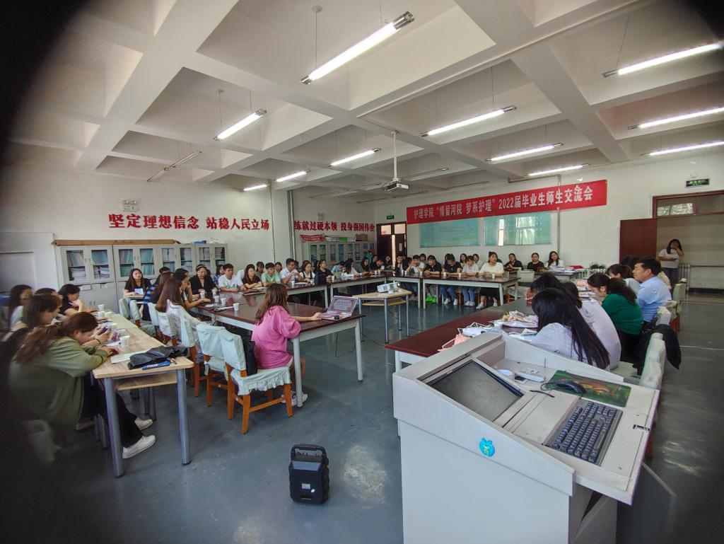 近日,sunbet在员工发展中心三楼素质拓展中心举办2022届毕业生“情留何院 梦系护理”师生交流会。公司党委书记、各办公室主任、教研室主任、毕业班班主任、全体辅导员和毕业生代表共70余人参加。